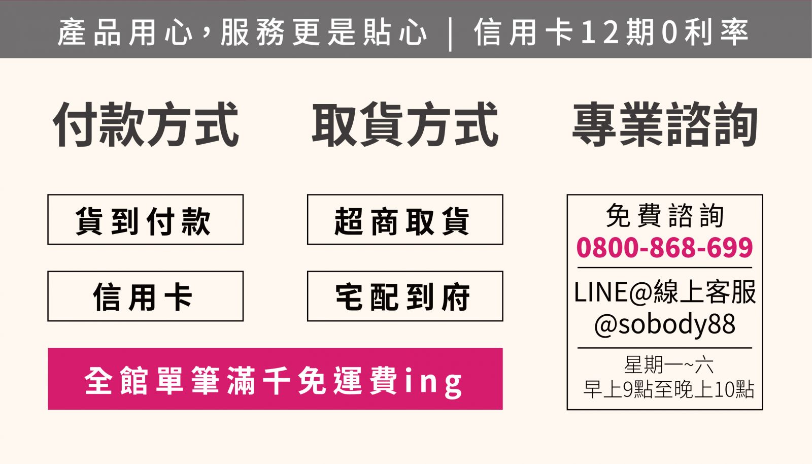 貼心滿額免運費 單筆訂單滿NT$1,000以上即享免運費