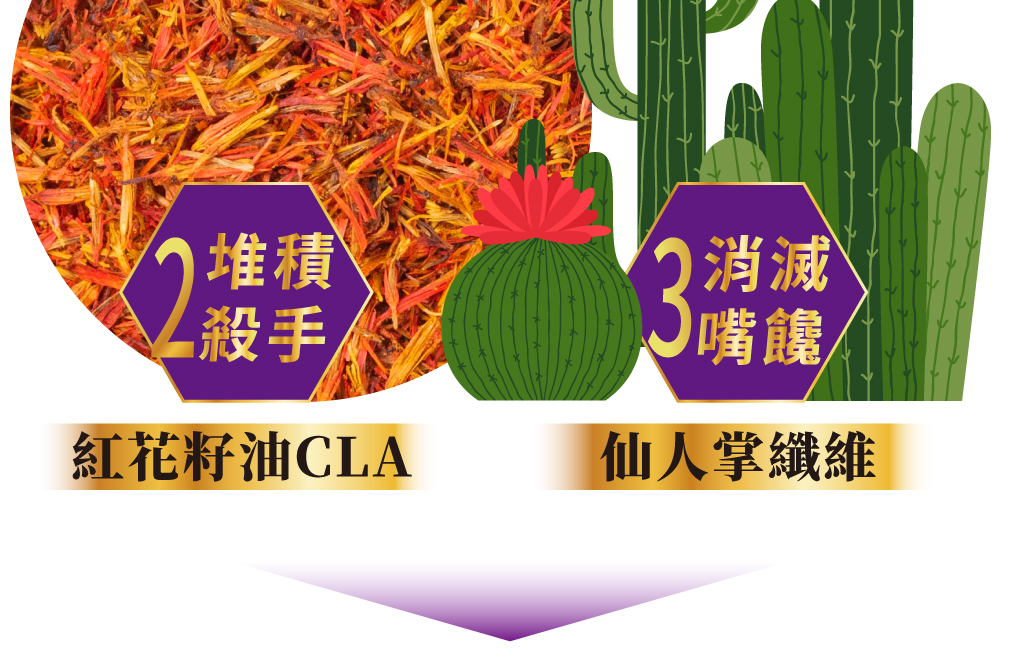 成 分:大豆蛋白萃取物(含苯丙胺酸、纈胺酸、蘇胺酸、色胺酸、異白胺酸、白胺酸、甲硫胺酸、精胺酸、離胺酸、組胺酸)、紅花籽萃取(含CLA共軛亞麻油酸)、仙人掌萃取物、肉桂萃取物、麥芽糊精